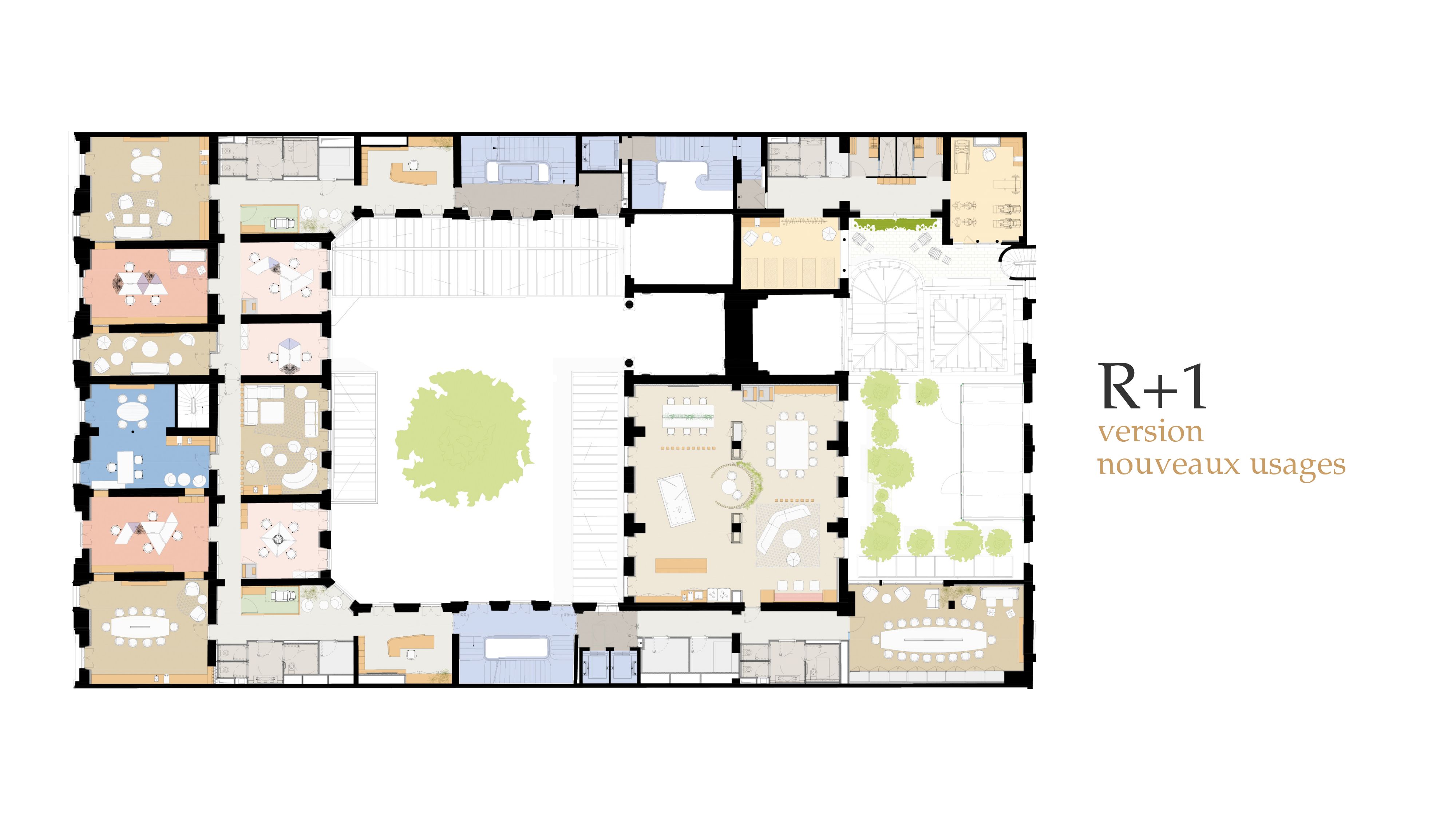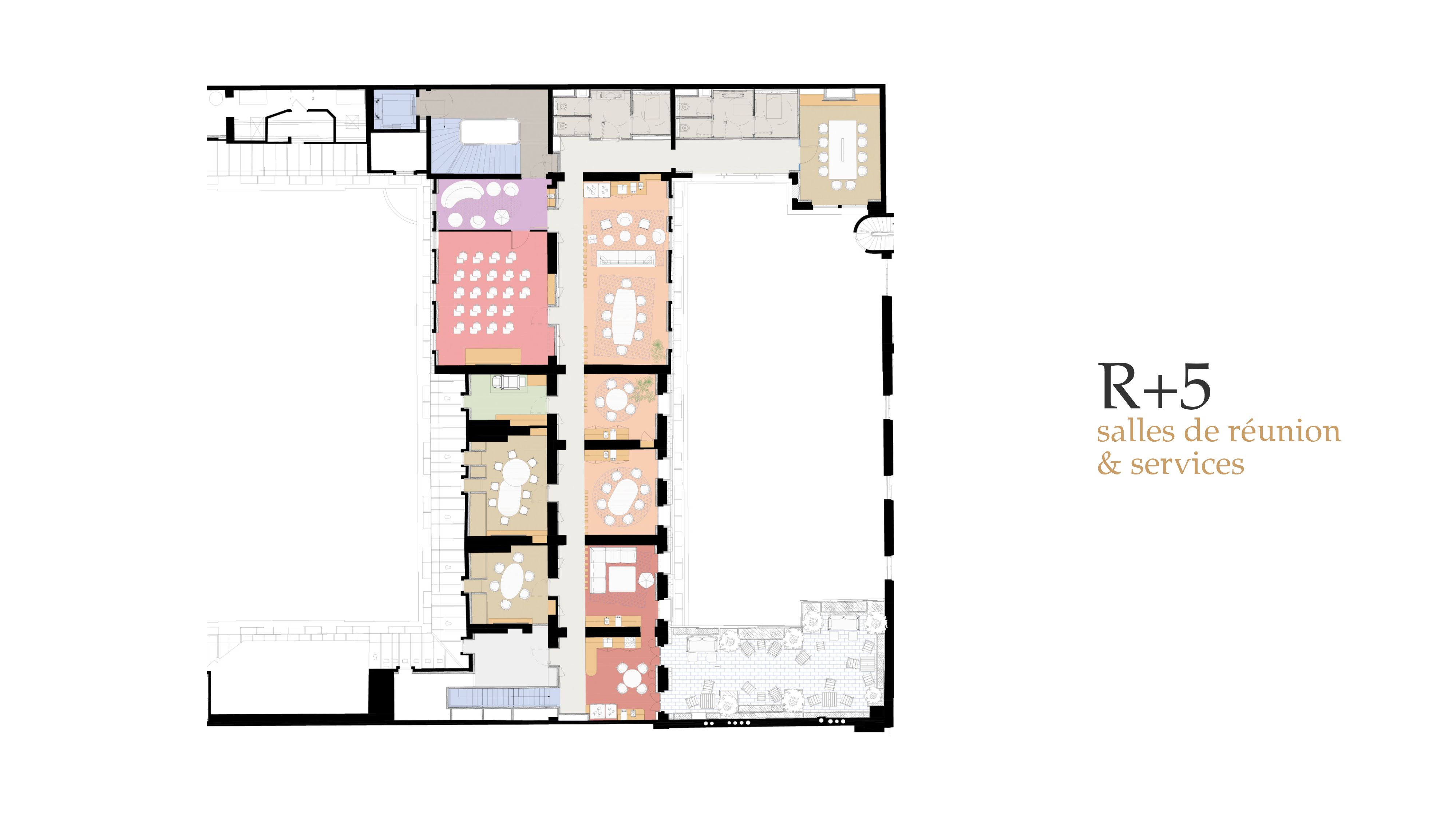 Les 2 hôtels particuliers de la rue Royale ont été rassemblés pour créer deux plateaux de 500 m2, rue Royale et Cour Royale, de part et d’autre des cages d’escaliers d’origine.