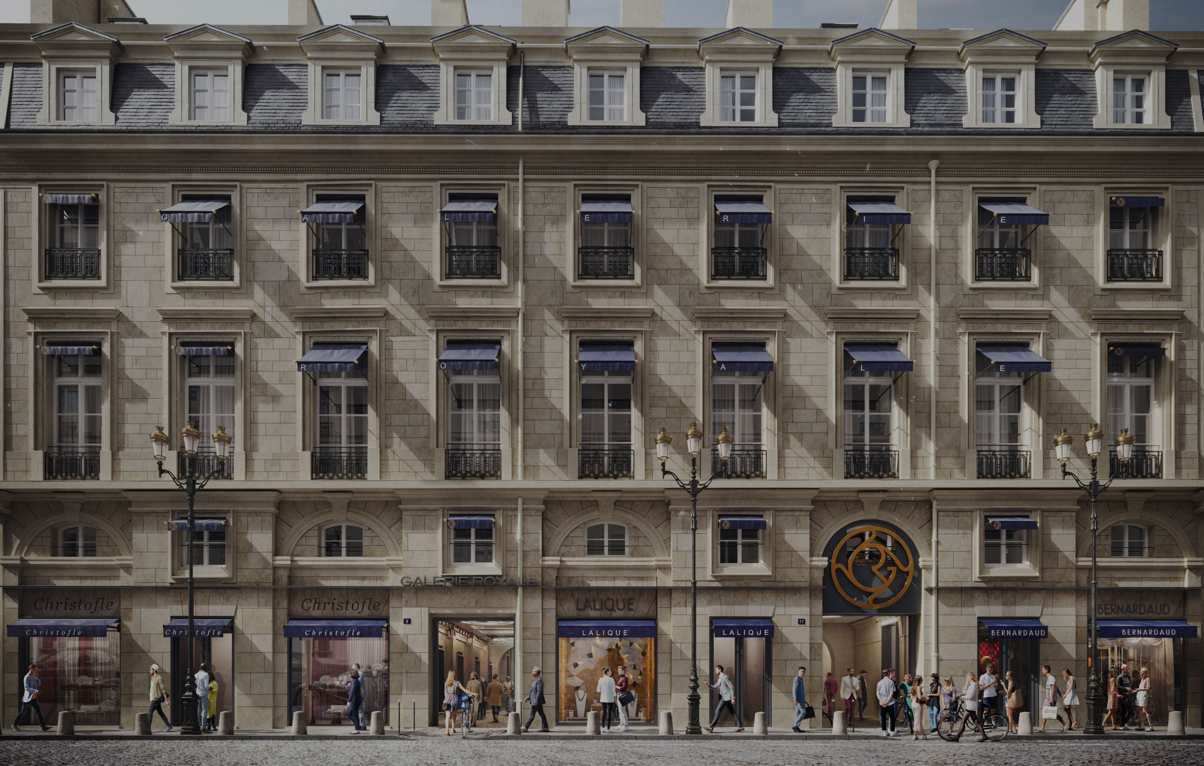 The Galerie Royale is built around two courtyards with two remarkable features. The first, dating from the 18th century, is characterised by a very sober style, soon to be enhanced by the planting of a century-old olive tree. The second, in an Art Deco style, boasts exceptional decorative features, an exceptional skylight, and an original mosaic that will be restored. On the ground, we have imagined a paving system that guides the flows and becomes a real unifying theme. To give new life and dynamism to the flows, the installation of a restaurant in the Royale courtyard, seemed an obvious choice.